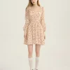 Design: Ruffled edges, floral print. Elastic off-the-shoulder neckline Long sleeves with concealed back zip 100% polyester for lining