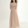 Style: Honey colored off-the-shoulder mini dress, wonderfully elegant and feminine look