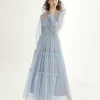 Design: Semi-sheer ruched hem · Square neck, adjustable shoulder straps, secret zipper at back